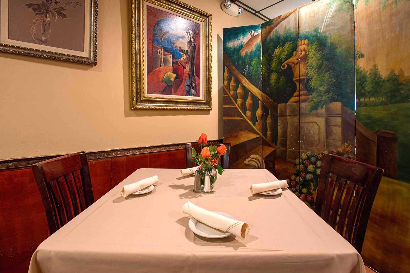 Assorted desserts and coffee mugs with focus on blueberry pie